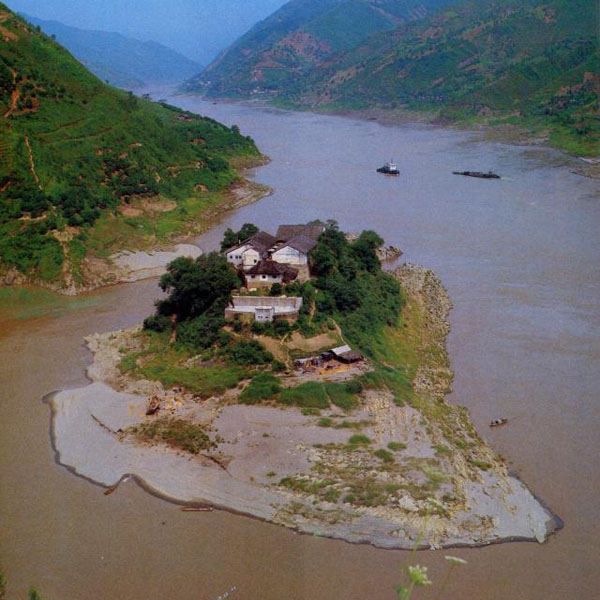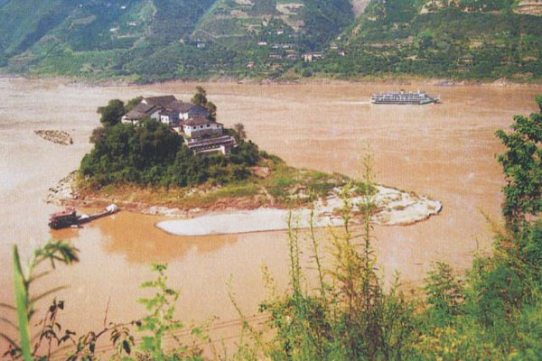 沿归州古城上溯,长江南岸青干河与长江交汇处,有一奇峰屹立江中。奇峰名流来峰,峰顶常年郁郁葱葱。奇峰面对一古镇,名沙镇溪。