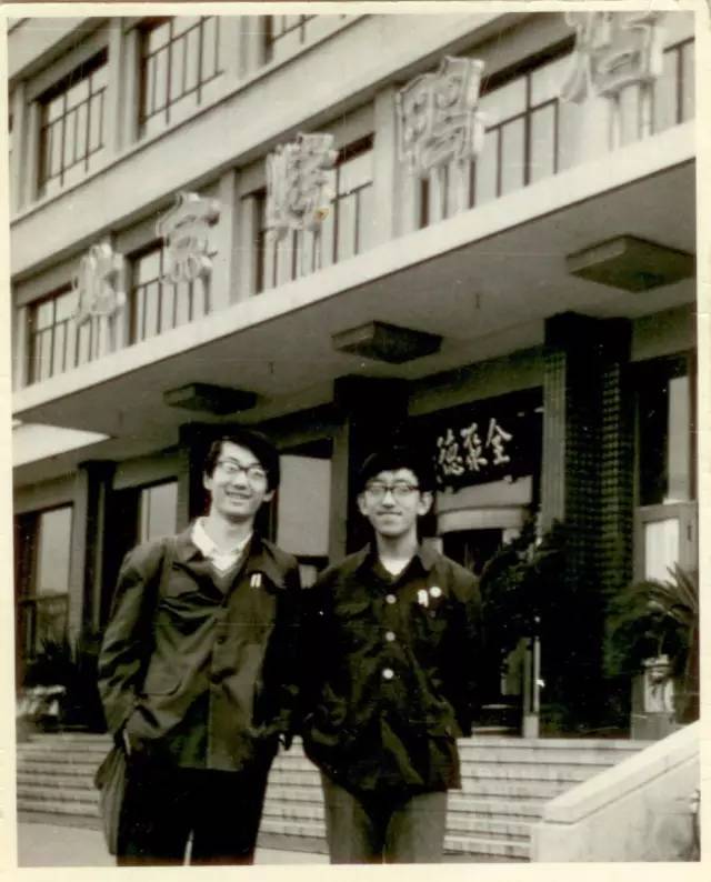 1984年秋张帆(右)与同学F君(现在教育部工作)在和平门全聚德烤鸭店门前留影。并未在此用餐,仅仅照相而已。当时的全聚德烤鸭店在北京只有两处店面,即和平门和前门。两人上衣上面口袋里插的两只钢笔,在那个时代很有代表性。